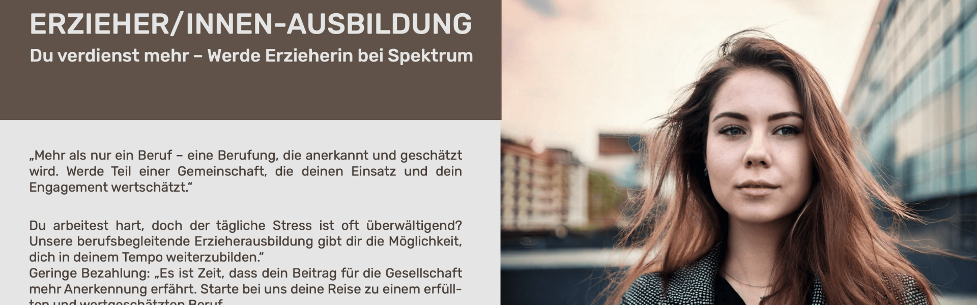Spektrum Hilfen ist ein anerkannter Träger in Brandenburg, (Anerkennung in Berlin läuft), der ambulante Hilfen zur Erziehung, sowie individuelle Unterstützungsangebote mit sozialem und gesundheitlichem Schwerpunkt anbietet. Unser Ziel: Menschen in besonderen Lebenssituationen ganzheitlich begleiten und stärken.